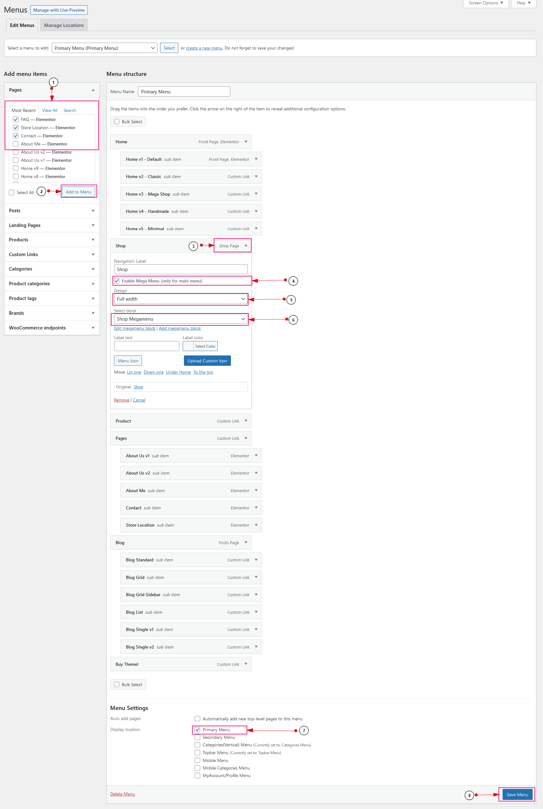 Mega Menu Items