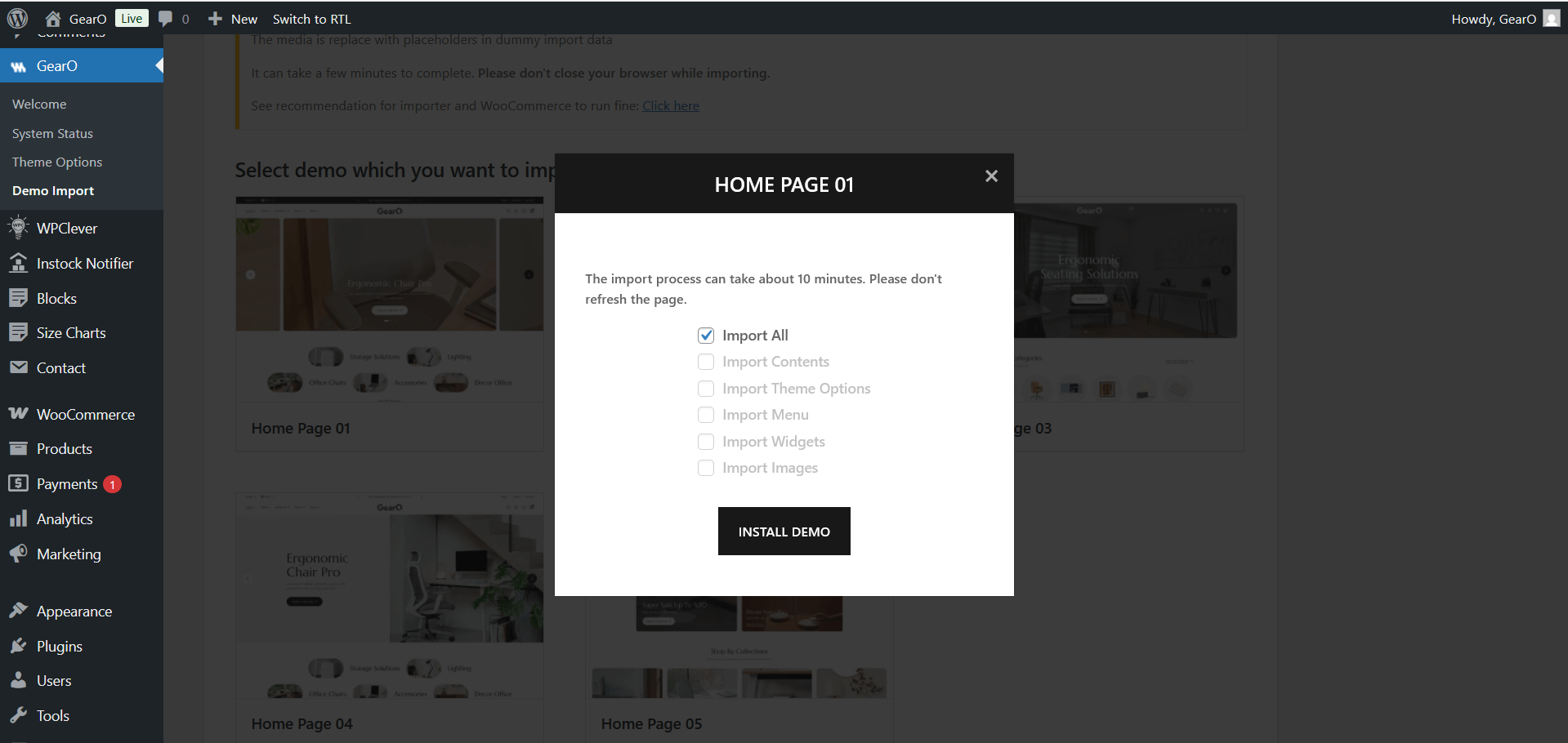2. Go to GearO > Demo Import.