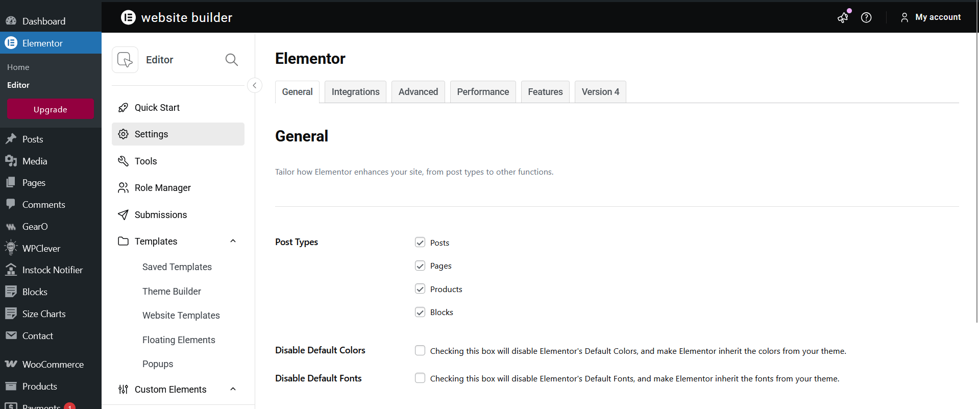 Enable Elementor for pages, posts and custom post types. Read more read Elementor Plugin Documentation.