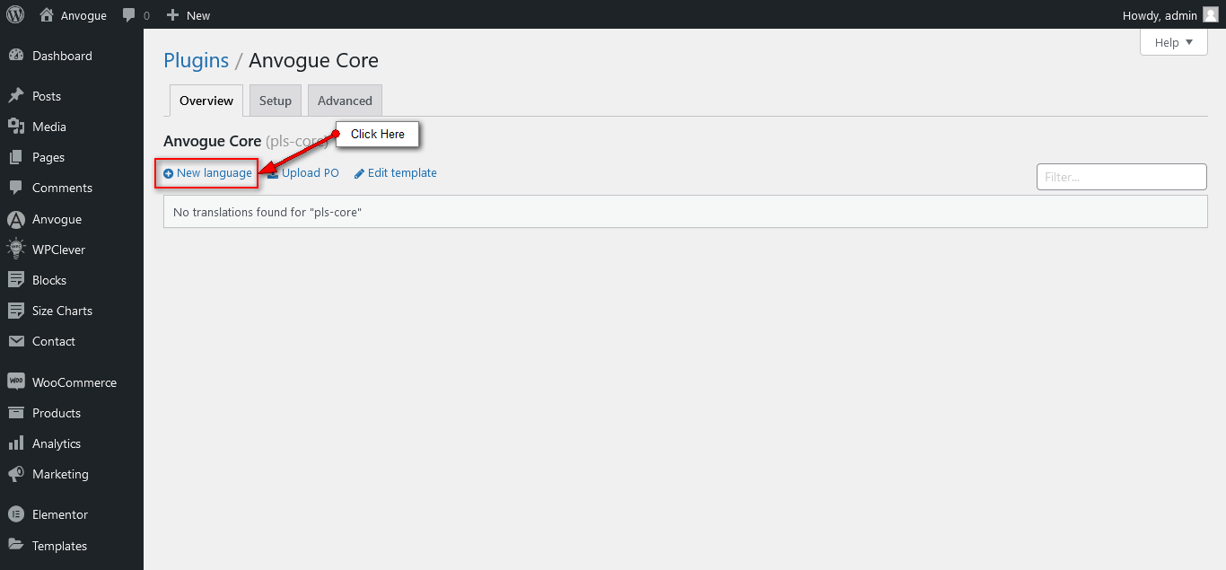 3. Click New Language link.