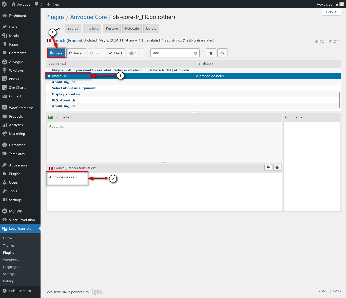 1. Install Loco Translate WordPress plugin.
