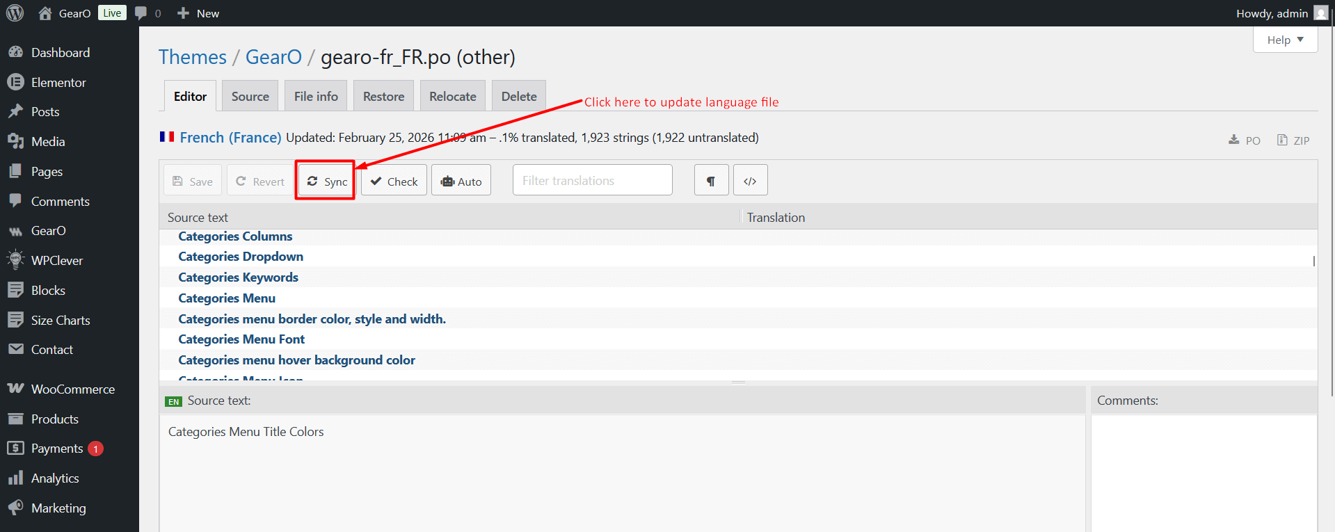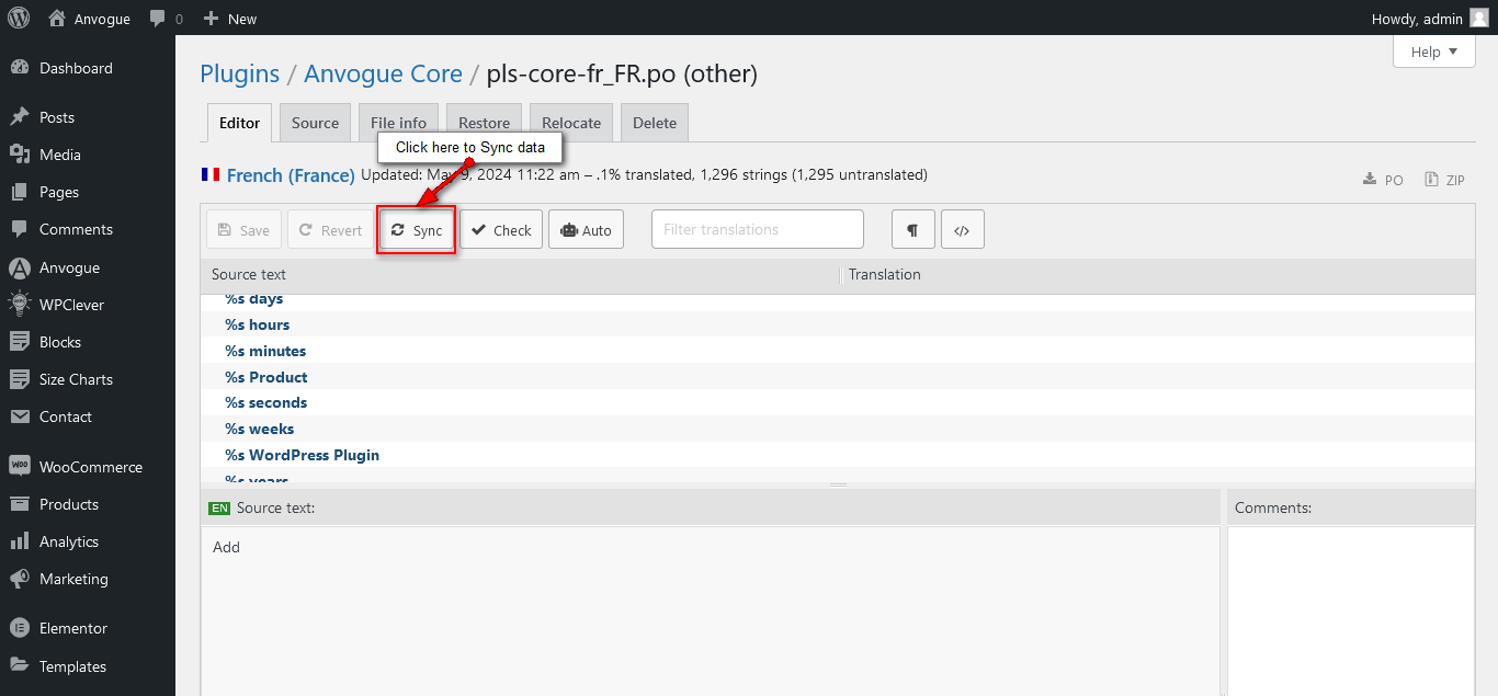 7. Note: To update your language file when you updated the theme, you only click Sync button.