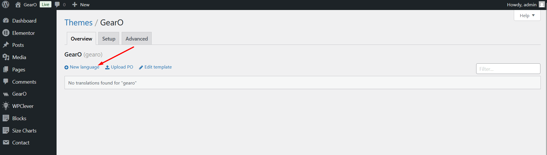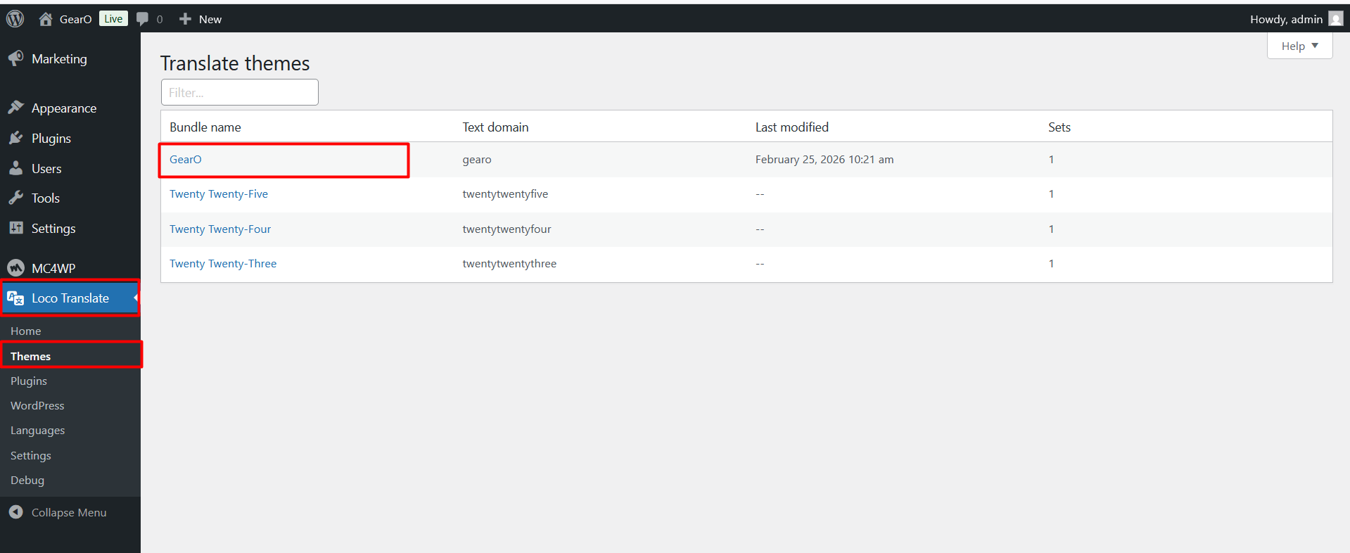 2. Go to Loco Translate > Themes and click gearo theme.