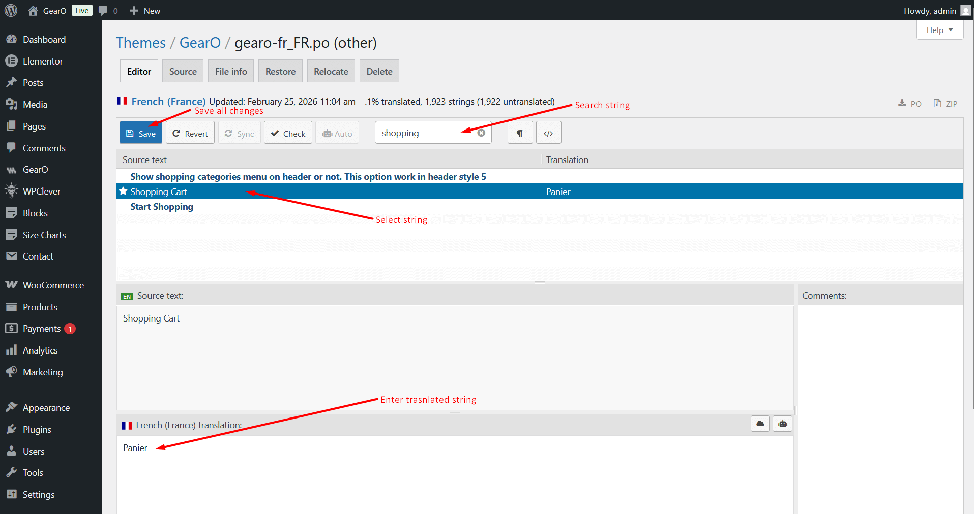 Notice: If you translate complete our theme in your language, You must be need to translate our theme(GearO) and our theme's plugin(GearO Extensions)