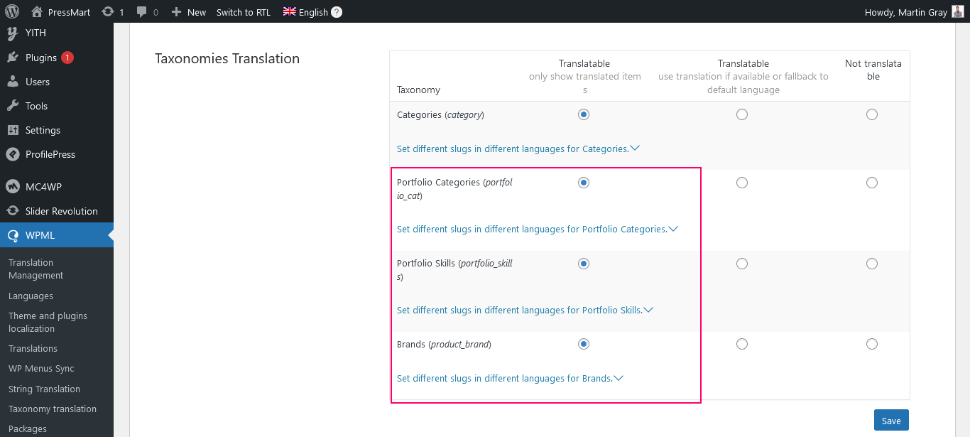 Installing WPML